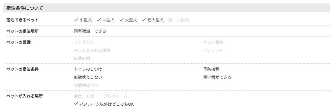 <ご注意>ペット同伴の施設を掲載しておりますが、施設側の事情で、ペット同伴が不可になる場合があります。必ず、該当ページでご確認くださいますようお願いいたします。