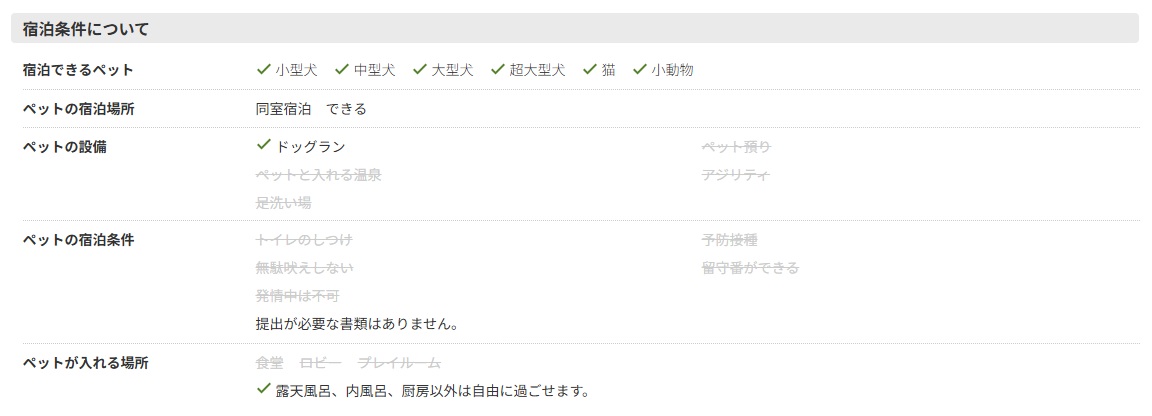 <ご注意>ペット同伴の施設を掲載しておりますが、施設側の事情で、ペット同伴が不可になる場合があります。必ず、該当ページでご確認くださいますようお願いいたします。