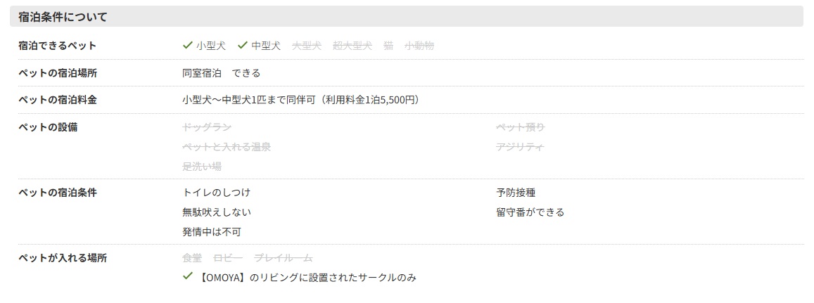 <ご注意>ペット同伴の施設を掲載しておりますが、施設側の事情で、ペット同伴が不可になる場合があります。必ず、該当ページでご確認くださいますようお願いいたします。